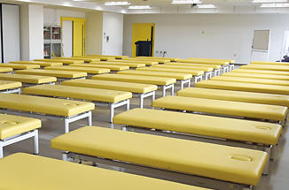 最新鋭の物理療法機器と50台以上のベッドを備え、さまざまな治療方法を学ぶための教室です。授業以外の時間は自主学修に熱心に取り組む学生の姿を見ることができます。 -