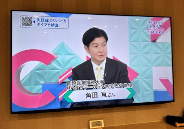 当教室の角田亘教授が、11月23日夜にNHK Eテレの番組「チョイス@病気になったとき」に出演しました。角田教授は、番組内で脳卒中のリハビリテーションについて、最新の知見を含みながら分かりやすく解説しました。また、番組内では、本学市川病院および成田病院のリハ科療法士も多数出演して、実際の訓練風景などを紹介しています。