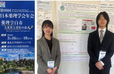2026年3月16~18日に開催された第99回日本薬理学会年会(東北大学川内キャンパス)において、成田薬学部薬学科2年の八森俊輔さんと橋倉春菜さんが、参加した研究のポスター発表を行いました。